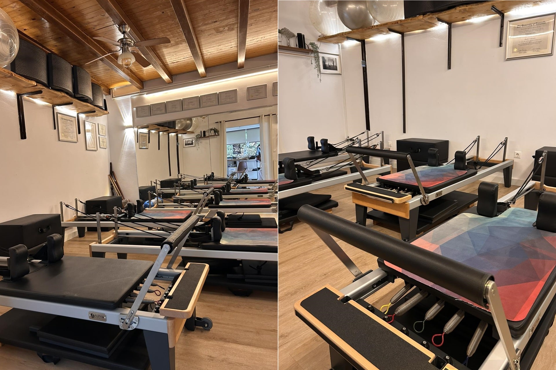 Ομαδικά μαθήματα Pilates με όργανα Στο Edumove Pilates Studio αξιοποιούνται τα περισσότερα επίσημα Pilates όργανα σε κυκλική εξάσκηση 4 ατόμων. Reformer, Tower, Cadillac, Chair, Ped-a-Pull, Ladder Barrel, Step Barrel, CoreAlign®